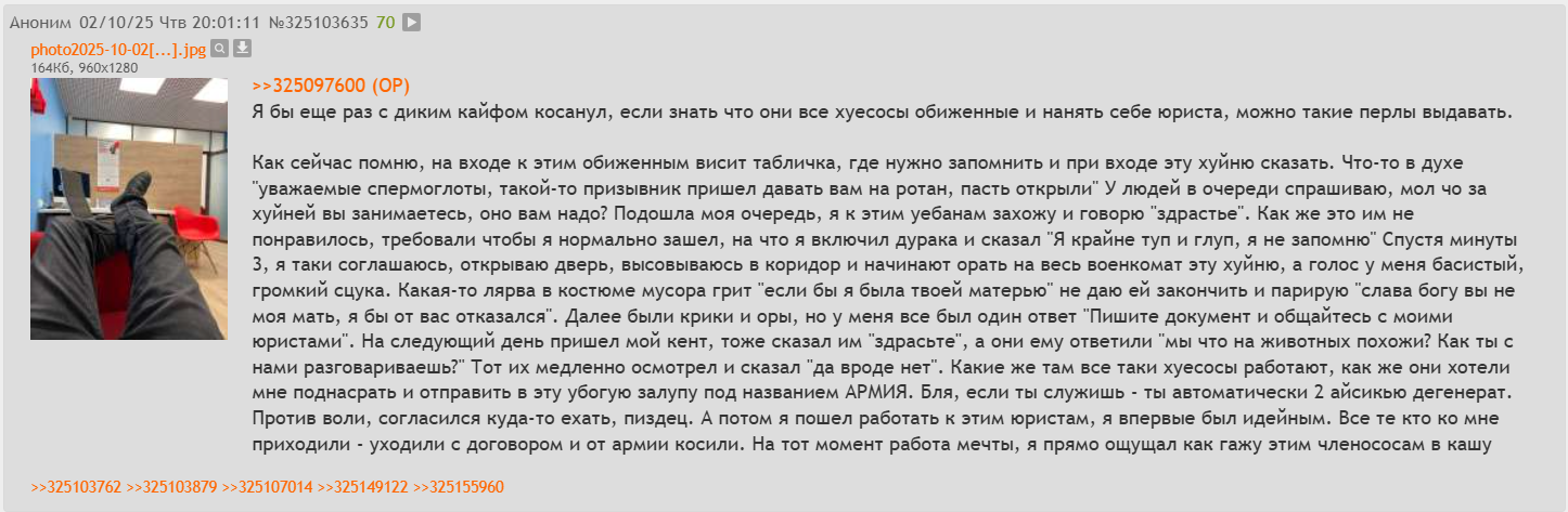 >>3556540 У нас другие военкомы. Тут 16-летние карликов, приходящих ставиться на учёт, оглушают 40-летние скуфы ударом в челюсть на входе. Даже без повода. И попытки попустить. И полный бардак ебанный