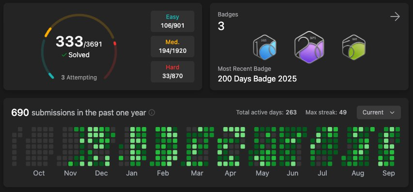 >>3557024 Неоднократно был литкод-свиньей. Сейчас вот тоже начал на постоянке решать дейлики и прорешивать задачи по тегам компаний, даже на премиум потратился.