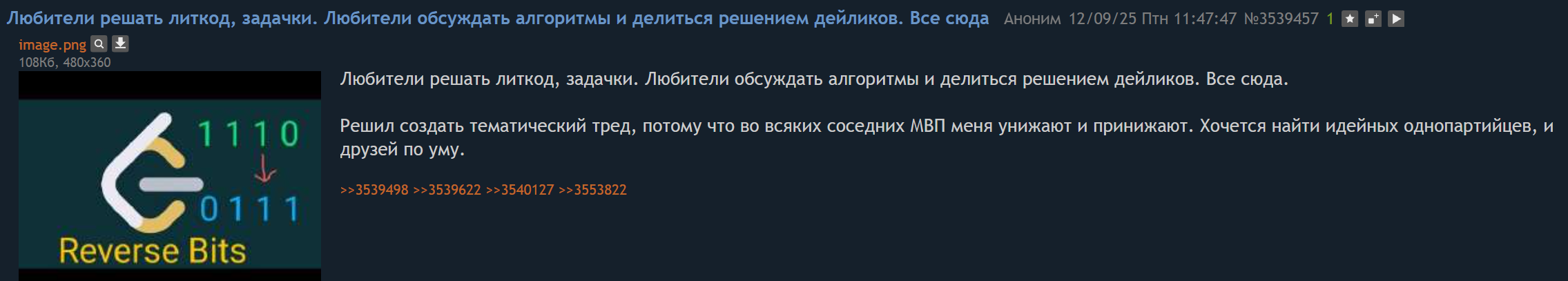 А в чем смысл был убирать то литкод из шапки? Ресентиментный додик наныл модератору где то? Все равно литкод это максимальный рилейтед для треда, это же очевидно всем. Модератор, нам нужны ответы.