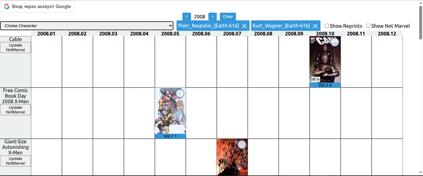 Вообще люди пытаются составить хронологии на сайтах. Типа какой комикс за которым идёт, но они все в виде горизонтального списка. А тут таблица с месяцами и названиями тайтлов.