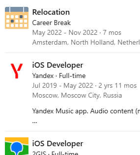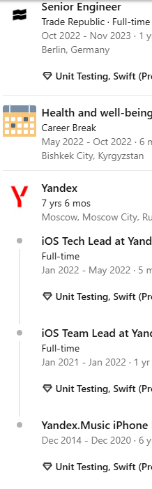 >>3533042 >еду в Казахстан и Грузию, можно ли где-то после этого продвигаться Полно зарубежных русскоязычных контор с хайром, просто лучше не через линкедын резюме подавать, а напрямую через форму на сайте. И еще лучше напрямую HR оттуда знать.