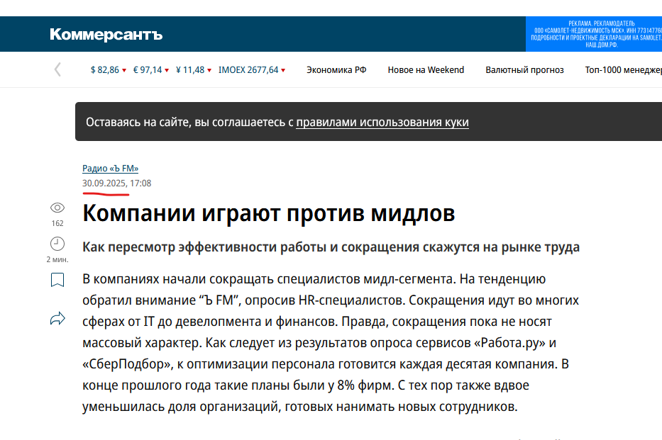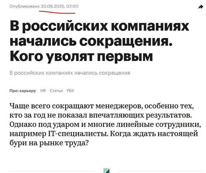 И это только начало. Как только в 2026 подымут ндс, пойдет вторая волна, а еще не все уволенные в первую найдут работу. Вот это будет мясо.