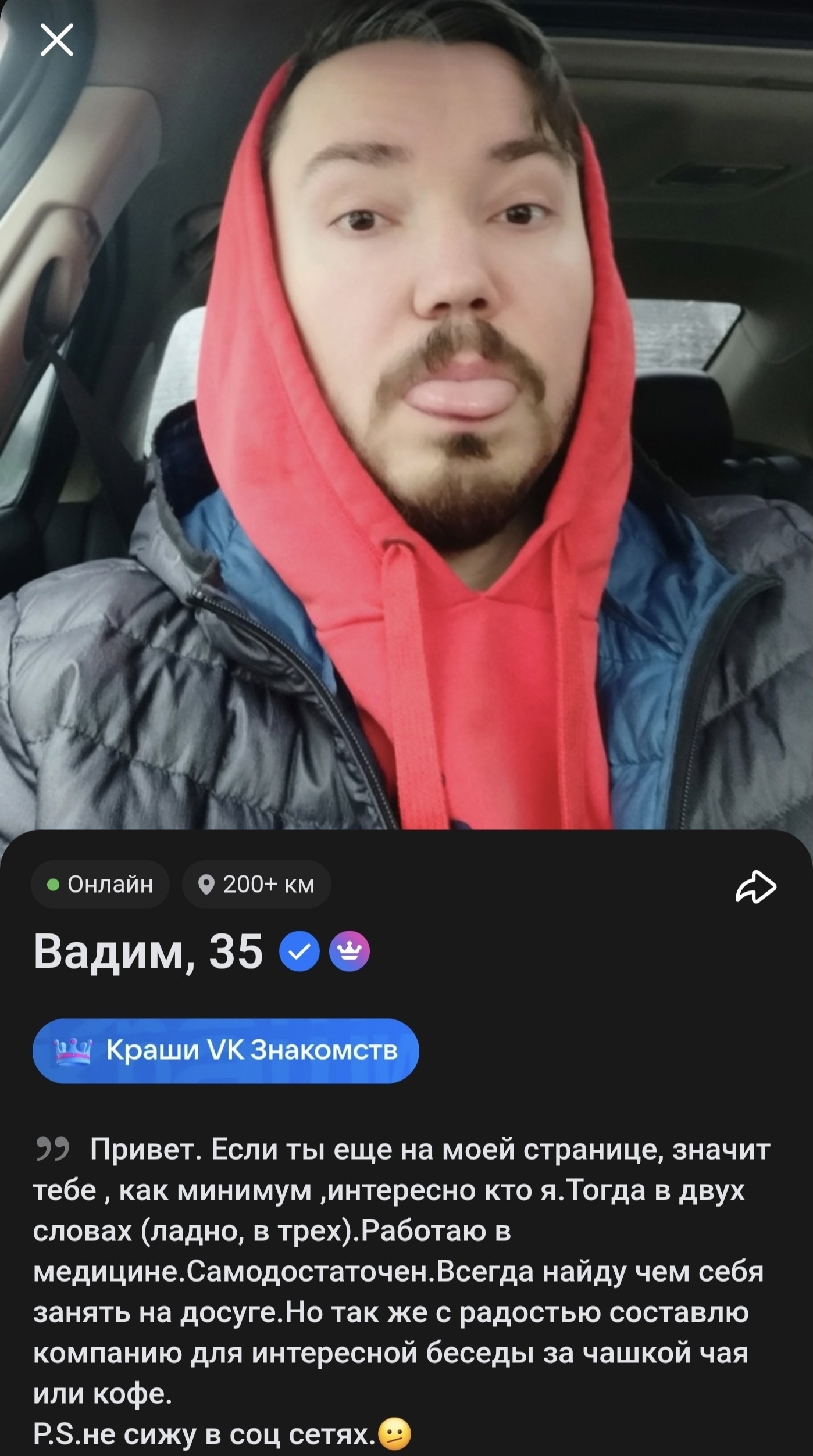 Поздравляйте, утром удалил вк знакомства. Матчей нормальных и свиданий с мая не было. Сплошной пиздёж и те же самые бабы которых вижу на сз годами. Если раньше каждую неделю или даже чаще мог ходить гулять, то теперь нихуя, студентки наверное в сентябре очнутся только. А тут заметил что зашёл полайкал и вышел и зачем хз