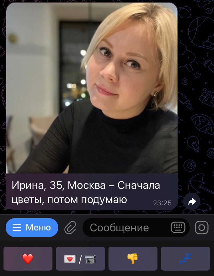 >>10285294 Мне это один раз удалось. Но тогда был очень удачный предлог - лаги на сайте. Ещё один раз мне попалась тня, которая спустя несколько месяцев после расставания со своим парнем пыталась найти новое знакомство в интернете и, видимо, из-за этого первой вытянула меня сначала в телегу, а потом на встречу irl. На встрече она рассказала пару прохладных о своих поисках. Сначала она по совету знакомой попробовала nekto.me (я же правильно понимаю, что это реинкарнайия чата вдвоём?), который оказался рассадником любителей вирта, потом она познакомилась с человечком из Сергиева Посада, которого спугнуло её желание встретиться (он решил, что она мошенница, и даже потребовал у неё суп с видео, и после пары таких просьб она забила на него). Она довольно была довольно приятной, и я жалею, что мне не удалось завести с ней отношения.