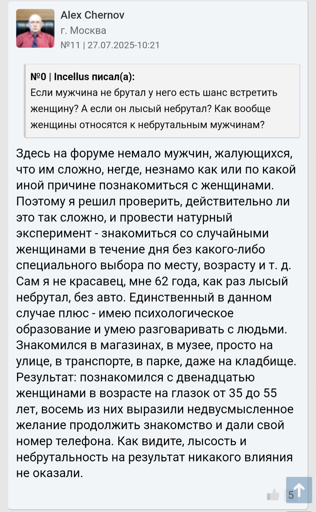Иду домой через парк, и навстречу идёт такая же твёрдая 5-6 из 10, прошёл мимо но видно жопа сгорела или самолюбие задето,я вернулся и привет привет ты в парк идёшь гулять да, давай вместе давай. Вообщем то сё, разговорились, она живёт рядом, в парке 2 часа круги нарезали, напизделись нагулялись. За руки потрогали друг друга, проводил домой и поцеловались, договорились продолжить Если мне каждая 5 на улице так, ладно 1 из10 будет заходить, то в пизду эти сайты с ебанутыми бревнами