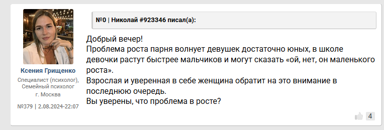 >>10287147 И чем же я тебе ее напоминаю, интересно? Мне высокий рост вовсе не в половом вопросе нужен, я уже неоднократно писал. Видимо, ты новенький. Я просто устал чувствовать себя всю жизнь мелким, ниже и меньше остальных мужчин, вот и все И я не инцел