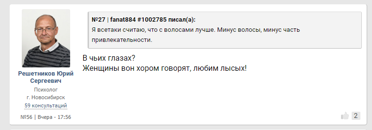 >>10284962 Почему как пример лысанов с формулировкой "лысина это норма и идёт мужчинам" приводят штук пять одних и тех же актеров и миллионеров? Почему как пример лысана они не кидают обычных лысых людей с улицы, которые на гоблинов похожи как правило? На одного Уиллиса, которому идёт лысая голова, приходятся тысячи лысых уродов