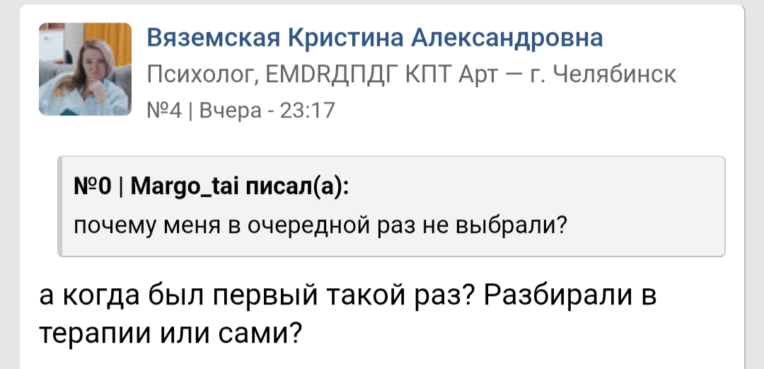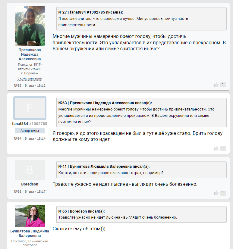 >>10284913 Нет, это форумное говно и шарлатаны ебаные, норм психологи это либо психотерапевты с мед образованием, либо психологи работающие в пнд в связке с психиатром, а на скринах чмошное говно, которое себе то помочь не в состоянии.
