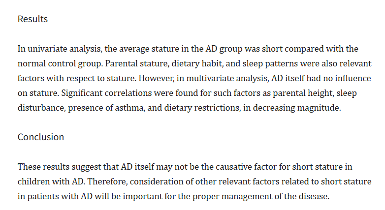 >>10285507 Условиешиз на месте. Читаю статьи про атопический дерматит - в исследованиях отмечают, что пациент им страдающие статистически ниже. Довольно таки интересно, учитывая что зафейленный детский рост может тупо не реализоваться в пубертатстве, если зоны роста рано закрываются. Мои закрылись в 14 лет.