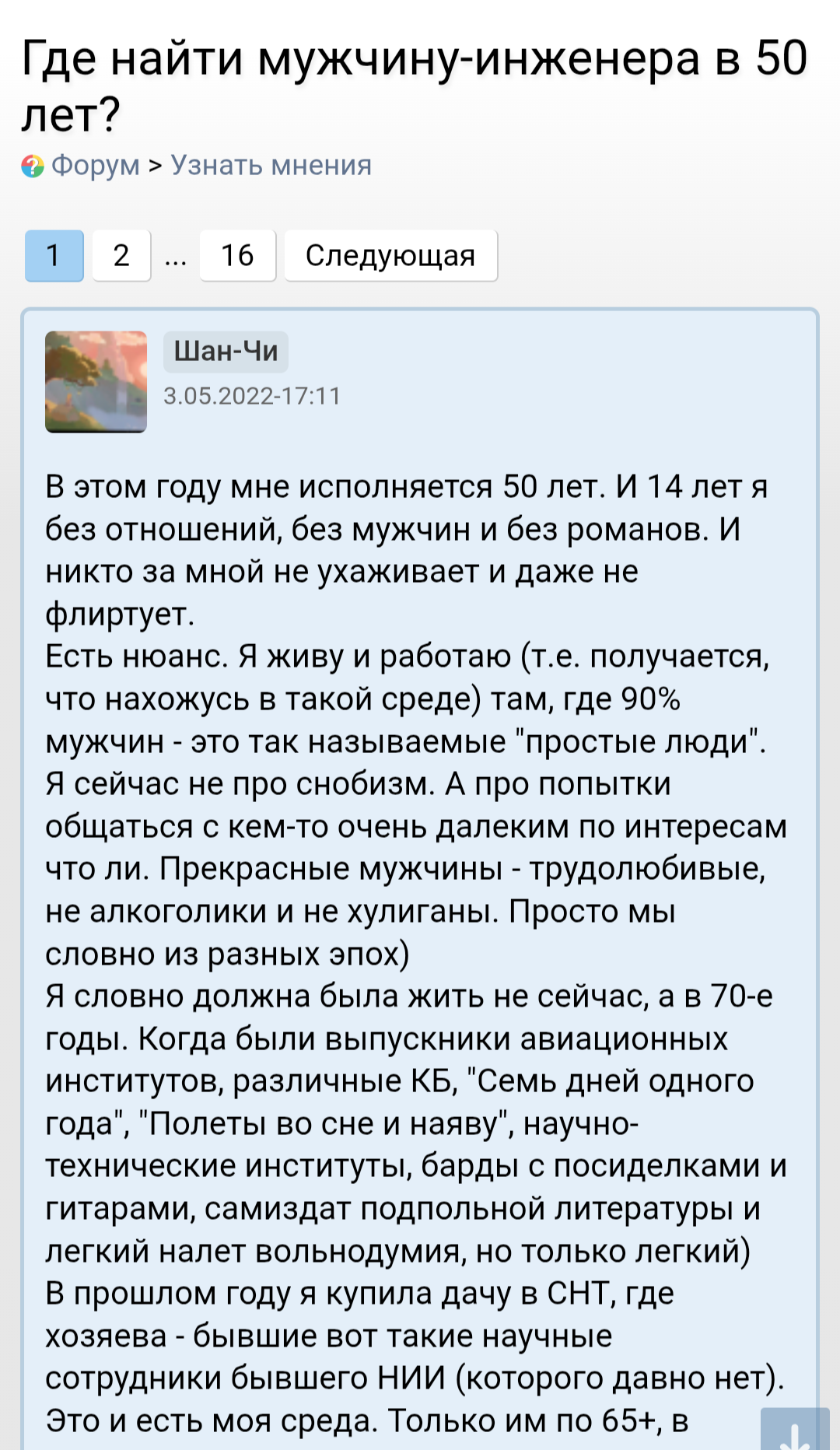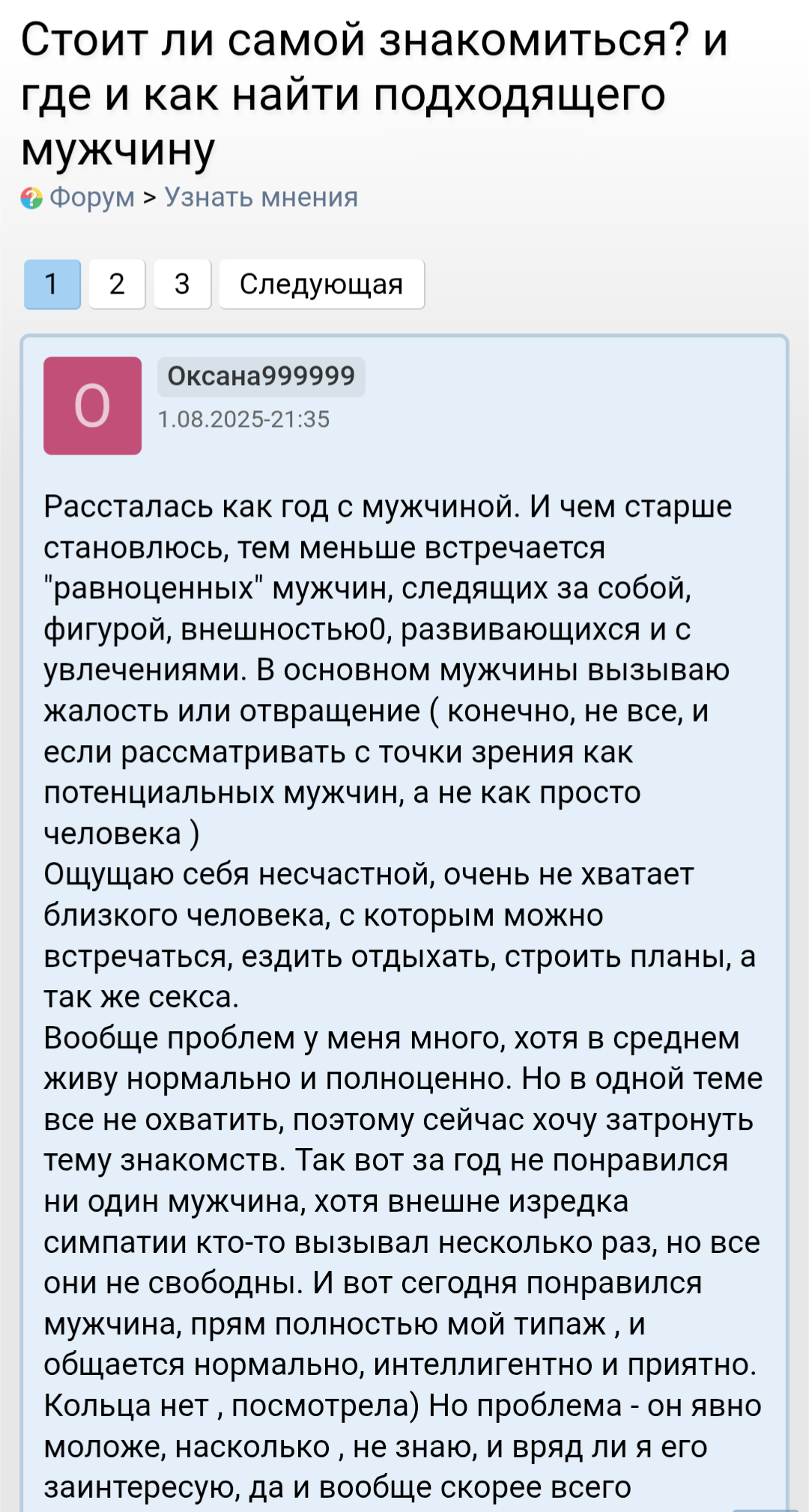 Так что условно вечный поиск "годно-куна" в итоге заканчивается либо одиночеством в 45+ со случайными связями на стороне либо браком с рандомчелом в 35+ по принципу "лишь бы штаны в доме были". И то по-факту проеб и грустная жизнь. Либо в одиночестве с осознанием того, что время летит, морщины углубляются и впереди только грустная и одинокая старость, либо с непонятным мужиком, к которому ничего не испытываешь от слова "совсем" и с которым придется жить целую долгую жизнь.
