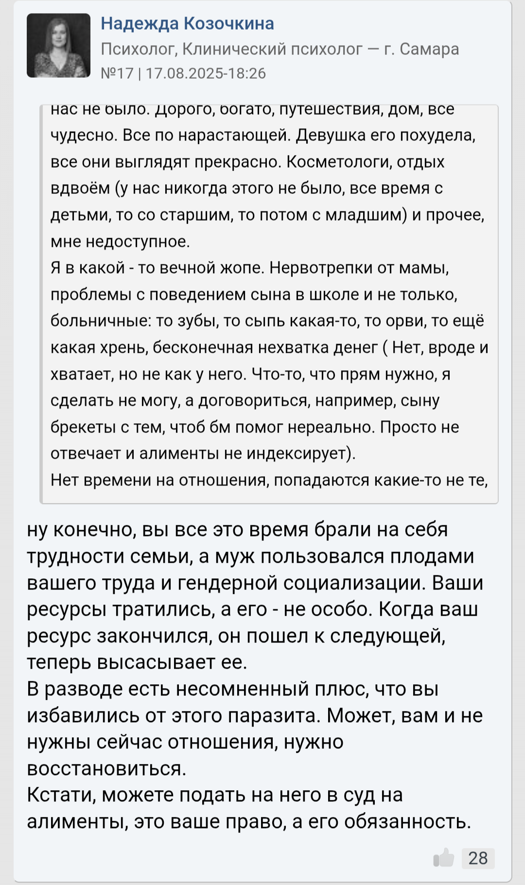 Великолепный ОП показывающий всю сущность «женских советов» в отношениях. Мизантропия в чистом виде.