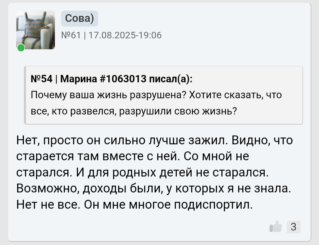 Ну и понятно, что бывший здесь не показателен, ты уже рассказывааешь про время, когда у вас все к расходу шло.