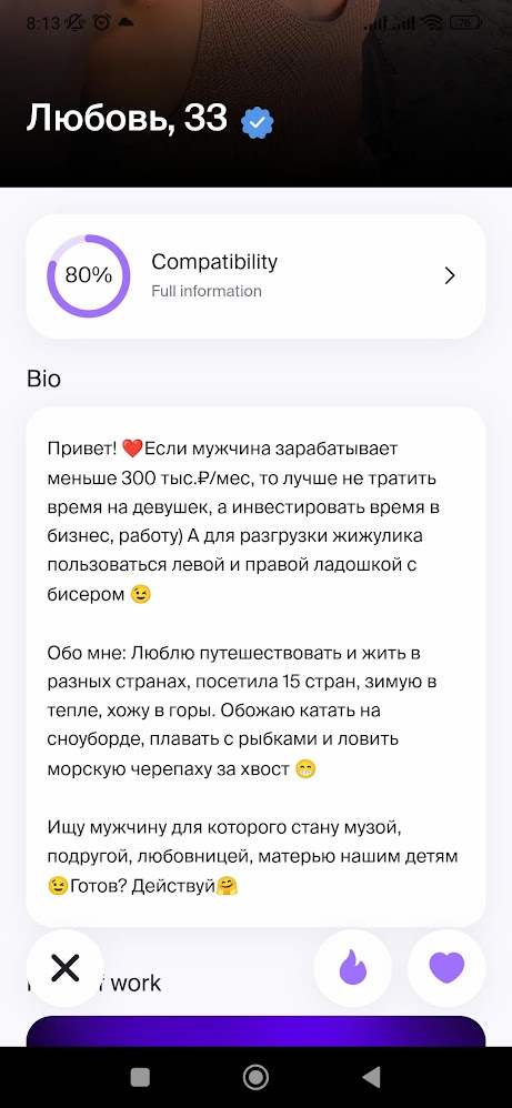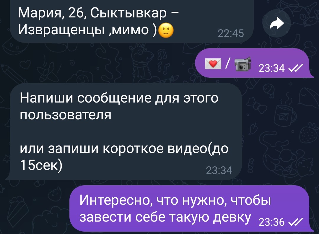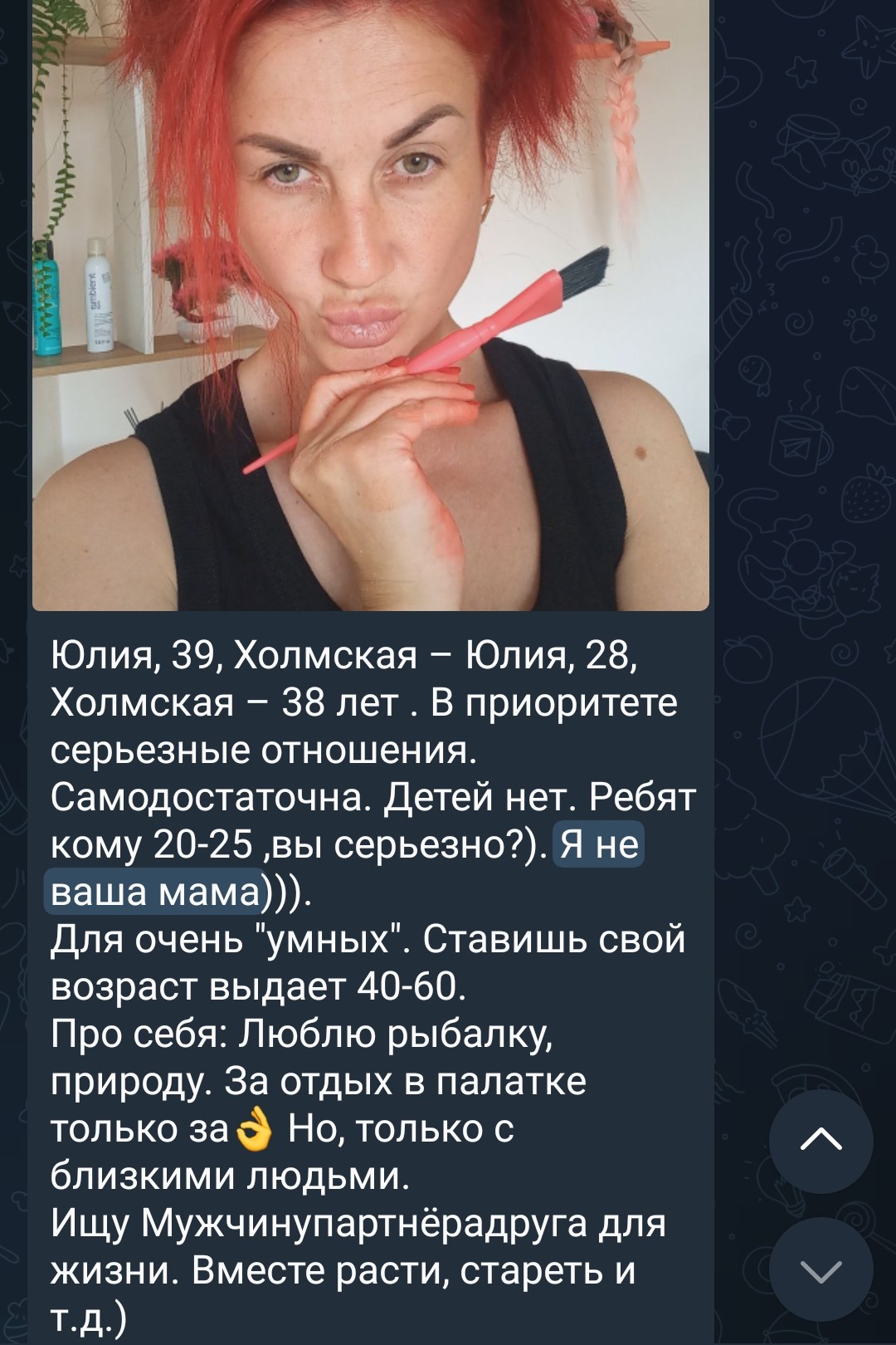 Вот анонне поделись своим опытом, на СЗ большинство анкет, "только серьезные отношения", "секс не не интересует", "на встречу не пойду, сначала заинтересуй" и тд. Кароче все это на первый взгляд выглядит бесперспективно, а главное ощущение, что какие-то бревна, которым вообще ничего не надо кроме оленя обеспечуну. Вопрос, как обстоит дело с такими анкетами на самом деле? Не в теории, а именно по вашему опыту? Можно таких тянок дергать для нормального взаимодействия? Ну типа досуг + ебля? Без этой хуйня про дохуя "серьезность", я понимаю что чаще всего вообще не стоит слушать бабу, что она там говорит, но также есть стойкое ощущение, что если баба такое с первых строк пишет, то она ну неадекватная какая-то, более того, редко, но встречал знакомых тян, которых ну считал адекватными, и у них такой хуйни в описании небыло, там пару забавных фактов о себе, описание как любит поводить время, и какая-нибудь шутейка например, без этой ебанины.