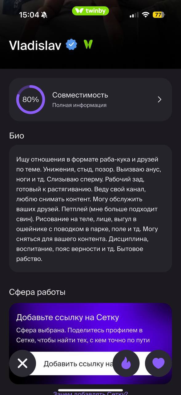 твинби - не ведитесь на рекламу этой параши, анкеты даже с фейками которых 99%, заканчиваются в питере(!) после 20-30 штук, просто 0 живых людей