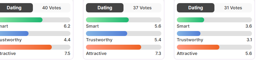 Решил проверить как рейтятся мои тянки и был удивлен. А на третьем я. Для меня то они very объективно. Ну и это про то, что представления о красоте всё же не настолько общепринятые