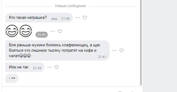 Я хуй знает, шо с этими бабами не так. Когда я был молодой и горячий, то было 3-4 лайка и тотальный игнор везде. Сейчас мне 30, позавчера только установил баду и пиздец, под 100 лайков, дохуя взаимок, стрелка популярности рвется из иконки, несколько охуительных зумерш 19-20 лвл написали сами, общаемся до сих пор. Я короче отлайкал половину из своих лайков, получил взаимки и просто устал от такого внимания и популярности. При том, что тянки в большинстве просто топ, о котором я раньше даже мечтать не мог. Отключил свой профиль, не хочу даже ни с кем видеться.