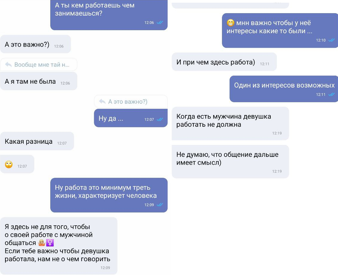 не хочешь общаться по телефону , максу или что там в моде у вас - тогда бегай по кафе ходи в кино и окажется что 19 из 20 , "не готовы к чему то большему чем прогулка" "не отошли от предыдцщих отношений" " извини там ц меня другой типаж " и прочее . и ты будешь как большинство здесь коупяшиз с разорванным очком арря созвониксы фантазеры я сходил на 10 свиданок мне писик не дали. Нюанс в том, что созвониксам эти 10 баб , которых выгуливали тоже скорее всего не дали бы, они их просто скипнули, не теряя времени.