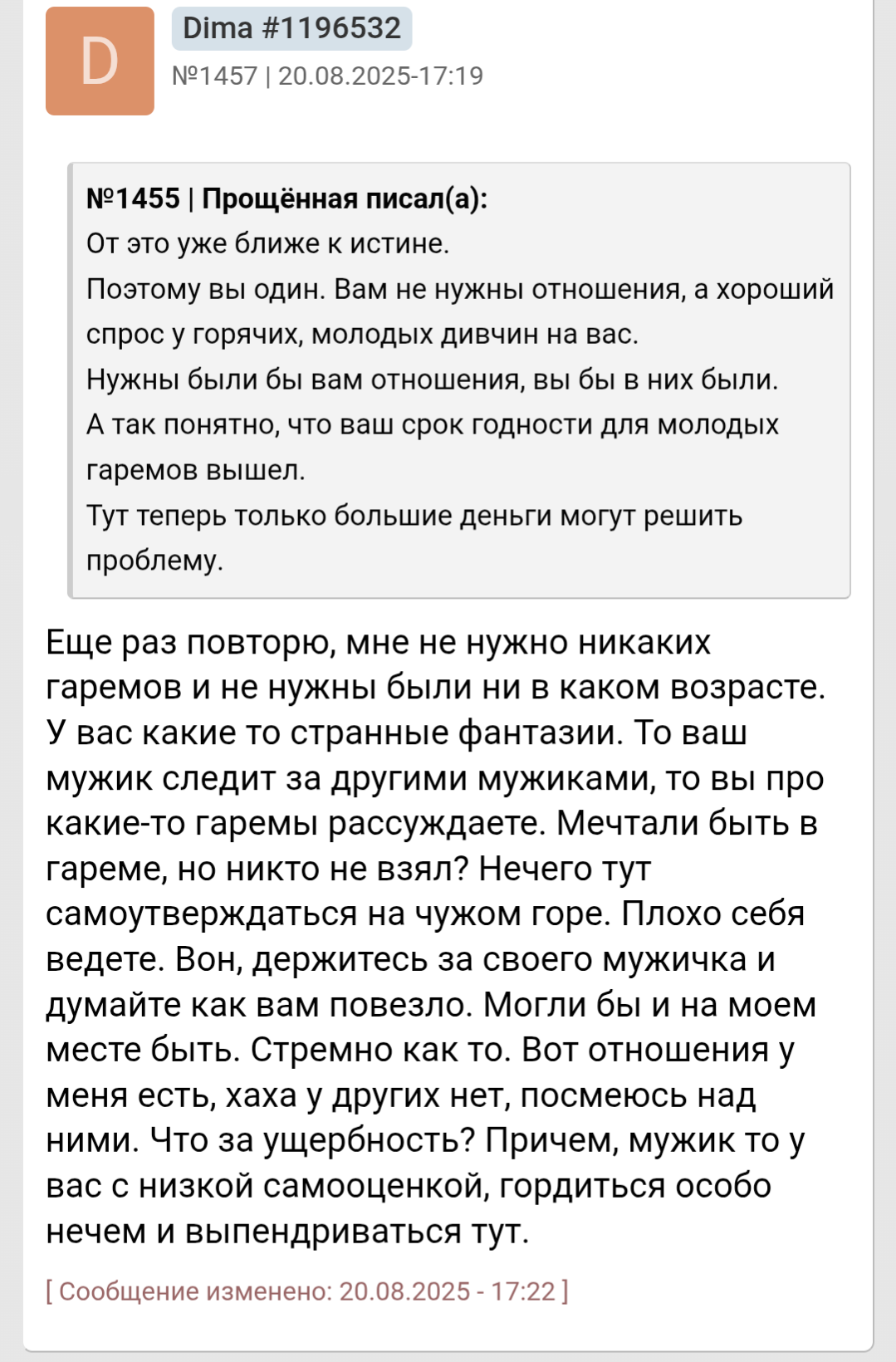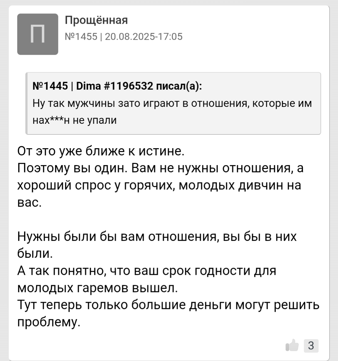 Анонам привет. Крч, я пиздос 25 lvl, в жизни было 6 тянок, с тремя из ними были отношения (это всё вот за последние лет 7 где то, как в универ поступил), больше чем на полгода в одиночестве не оставался, теперь вот такая тупая херня, что уже год с небольшим как я вообще без девушек, все встречи оканчивались погулять\поболтать и всё. Чувствую что вся харизма улетучилась, в целом женщину даже просто на прогулку\свидание вывести стало невообразимо тяжело, ещё и скуфею потихоньку (мыс вдовы проглядывает (патлач), второй подбородок прорезается). Ещё и подозреваю что все поебушки были лишь невероятной удачей и стечением обстоятельств. Инцелом, я так понимаю быть не могу, но в общем как теперь быть то сука? Терпеть, надеятся на то что очередная вуман подвернётся (на сз не рассчитываю, это просто мрак ебучий)или уже смирится и спокойно пытаться жить дальше в одиночестве, качая правую руку?