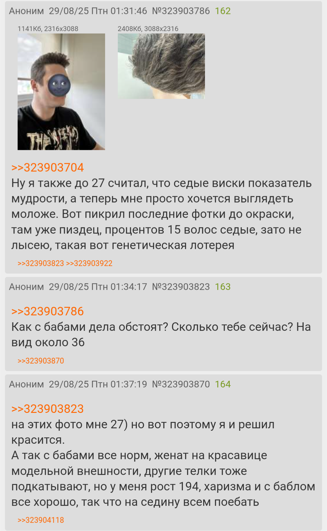 >>10305389 Рост ещё очень сильно компенсирует старение. Когда ты уже не молодой, но при этом рослый и широкоплечий, то выглядишь все равно охуенно. Ещё и запас есть, так что не страшно просесть на пару см. А какой запас у меня со 175? И никогда и подумать не мог, что так сильно накроет из-за роста, потому что ещё лет 15-20 назад не было такого комплекса