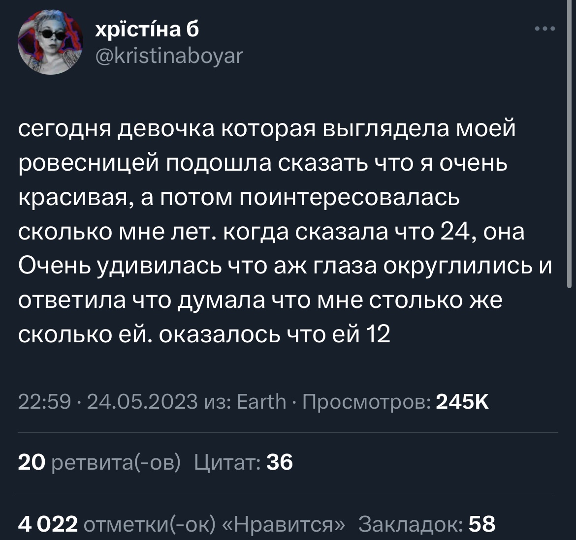 >>10302498 >>10302499 Ну, справедливости ради, я в 32 выглядел так, что 22-летние меня с ровестником считали. Но это тогда, а в 35+ выглядеть молодо - извините, как говаривал Станиславский: "Не верю!".