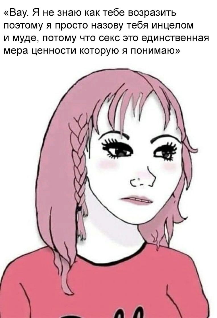 >>10309054 >Проблемы с тянами у меня как раз, потому что я не готов отношаться с каждой. Ну, то есть у твоих друзей-скуфов, женщины всратые, жирные и старше них (при том что они сами не мальчики - там неиронично старухи, получается). Как я неоднократно писал - разница между нормисом и инцелом в том, что нормис ест условный пирожок с говном, преодолевая рвотные позывы, да еще и выдавливает улыбку, потому что так надо. А инцел накусывает и сразу плюется, да еще и возмущается, почему в его пирожке говно, а не мясо, или хотя бы картофель.