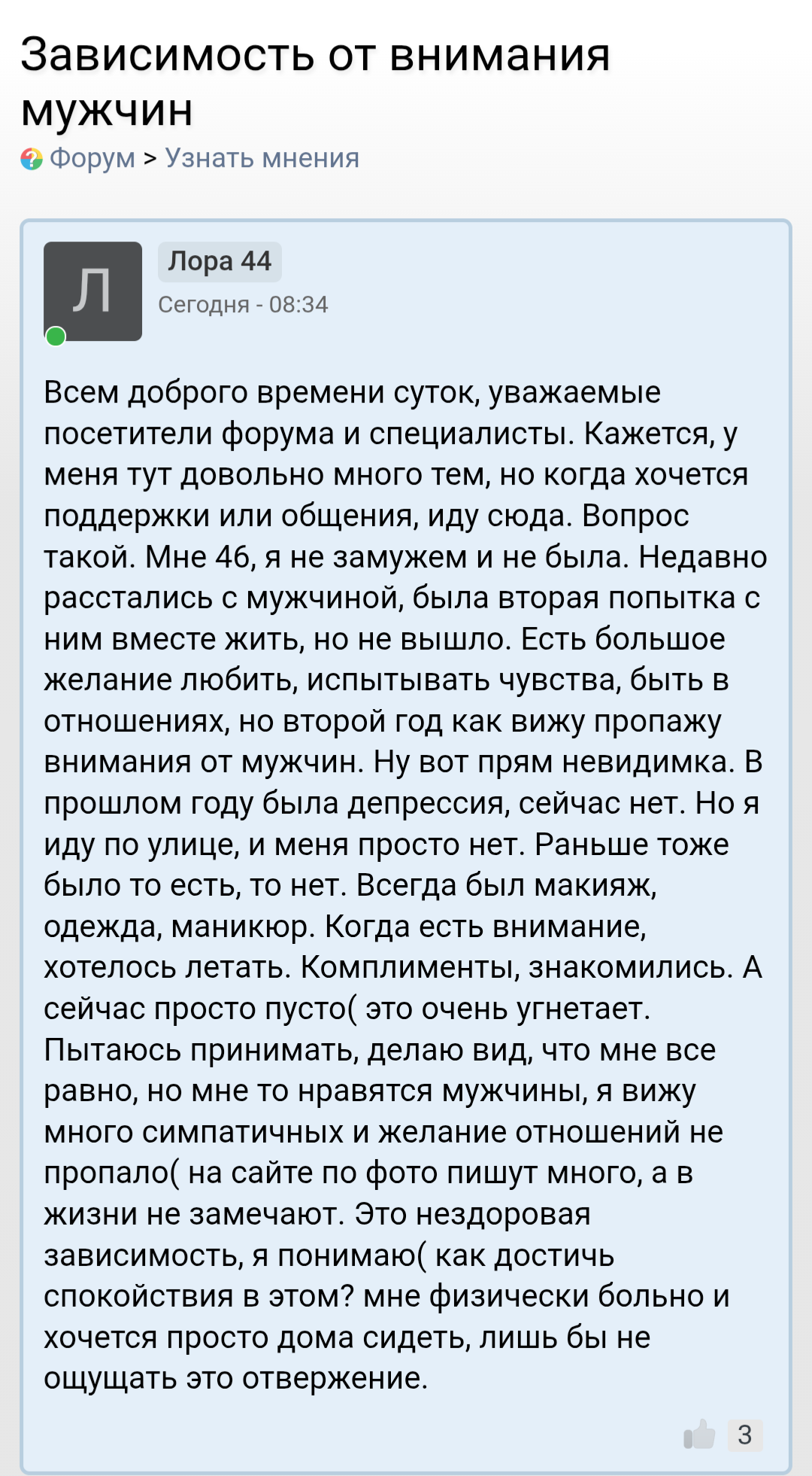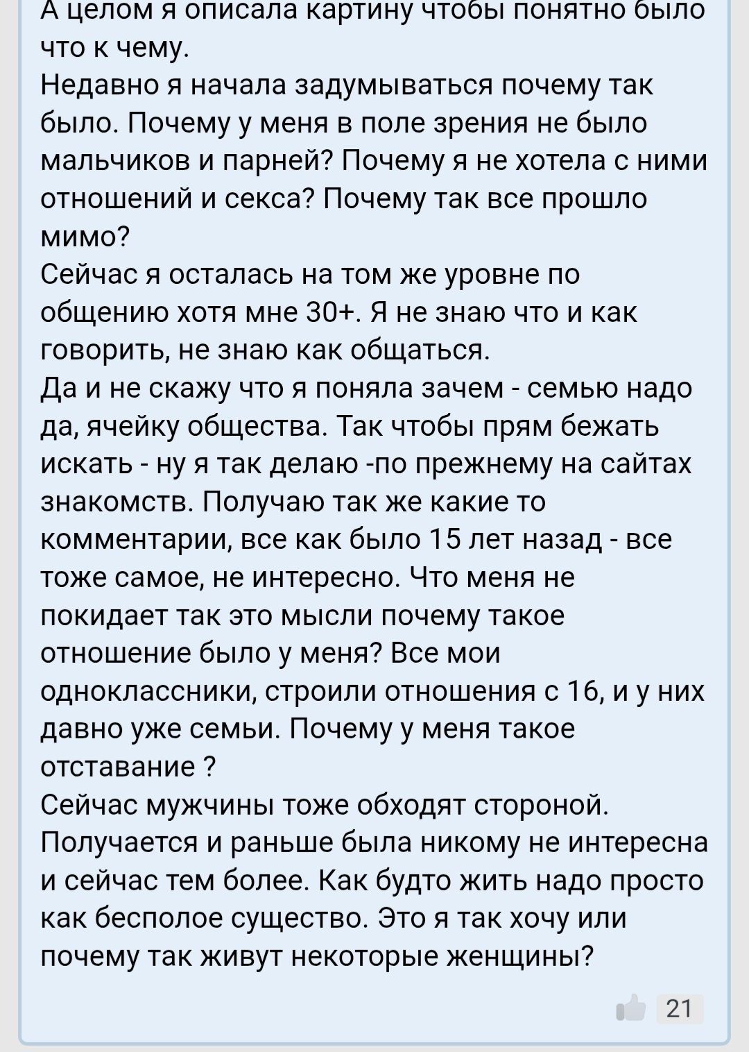 Но зачем мне всё это? Я не стал выбирать онлайн-знакомства, я выбрал кое-что другое. Почему? Да ни почему. Какие могут быть «почему», когда есть одиночество.