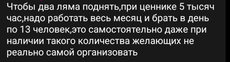 Дальше считаем рабочие дни, где ей физиологией 3-4 дня придётся отдыхать, а оставшиеся 26 ей так или иначе захочется брать выходные, из чего останется 14-15 рабочих дней.