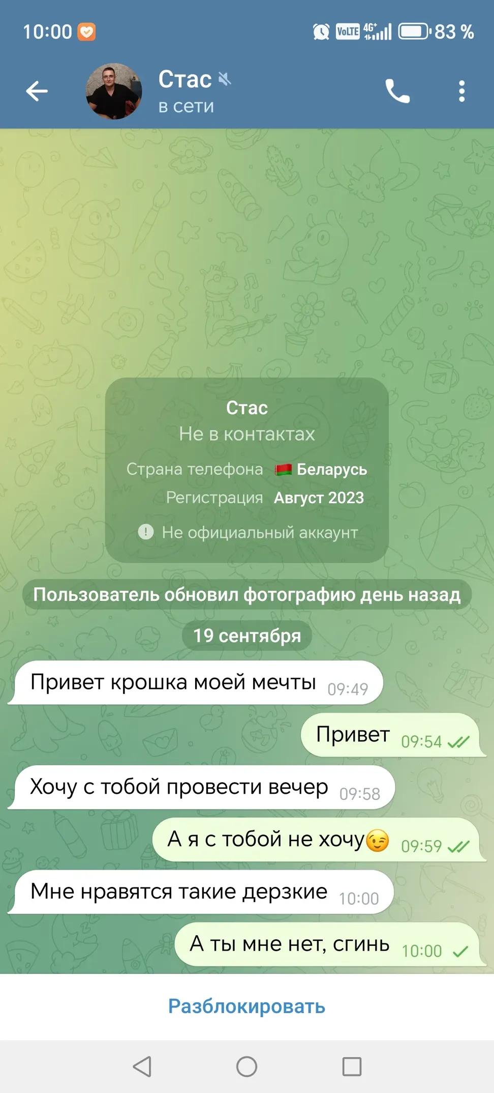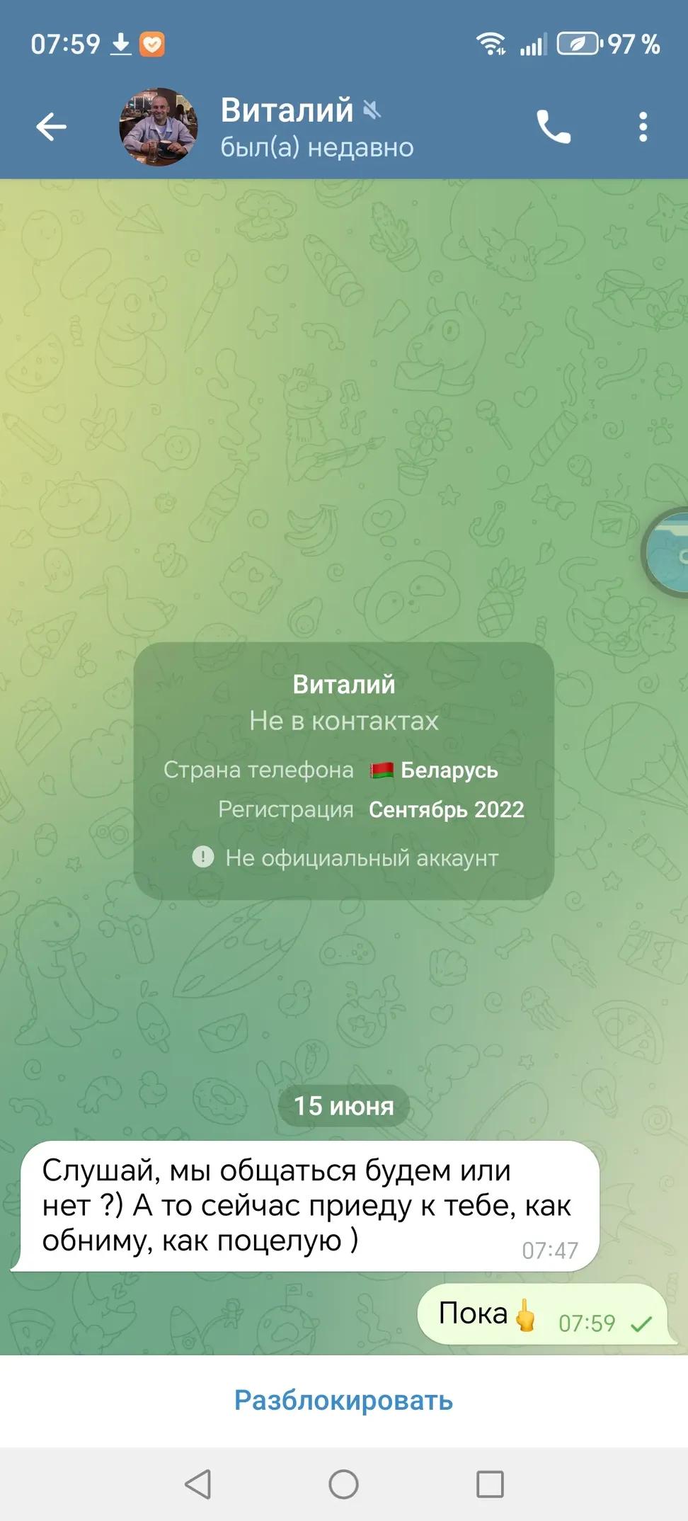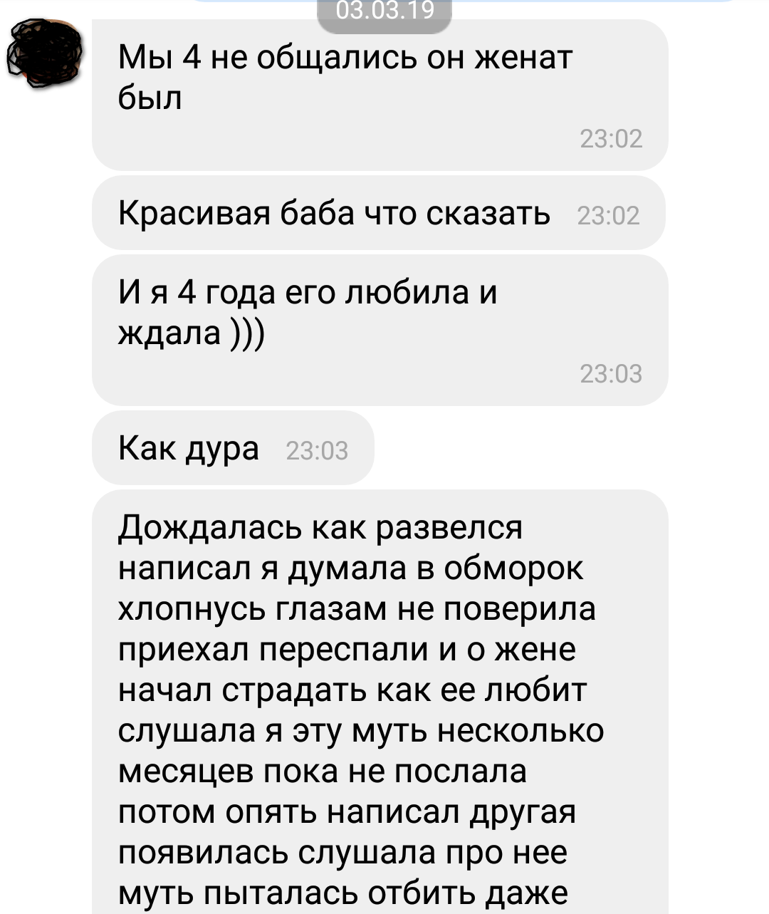 Никогда, слышишь? Никогда не занимайся такой хуетой в переписках с тянами. Если она еще может чет могла тебя проверять, может бы очухалась и захотела продолжить общение(что вряд ли, чувствую там свиданка была почти в духе этой переписки), то вот после такого твоего захода точно нет.
