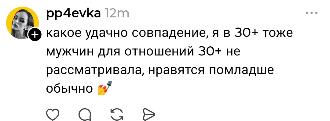 >>10336505 Окей: в промежутке но 30 до 40 меня тоже никто не выбирал. Одна женщина была старше меня на 6 лет с двумя детьми, которая была уверенна, что я ещё радоваться должен, но я тактично отказался, чем вызвал лютое возмущение. Я имел в виду, когда тебе и 30 нет, а к тебе подкатывает женщина лет 40-45. Мне, в целом, такого не надо было никогда, мне бы и сверстницы хватило, но и с ними тоже не очень было. Вот так жизнь и прошла