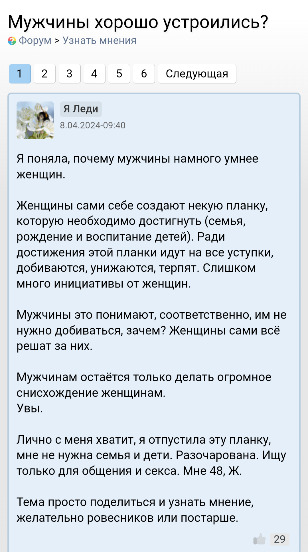 Мне тян никогда не пишут только мужчины. Думаю даже объяснять не нужно что сейчас на рынке биоотношений происходит? Вот буквально пару дней назад фотку прокоментили и не одного лайка или диалога в которым бы тня была заинтересована именно рассматривая как партнёра с этой фоткой. Это реально предел луксмакса я уже темболее старею. Мы тут по сути мазохизмом занимаемся в треде ибо не подкатывали в 15 не будут и в 30. Гранитная база не иначе.